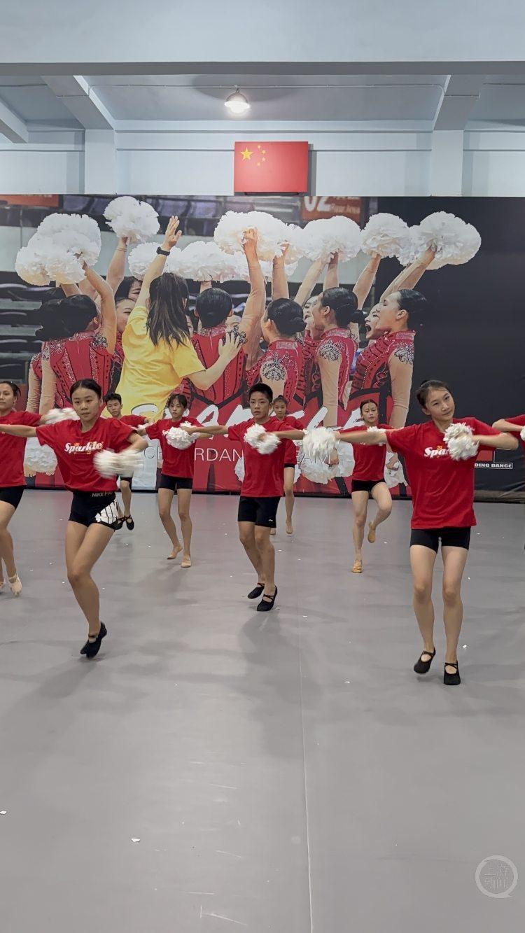 Sparkle啦啦操队在学校排练中