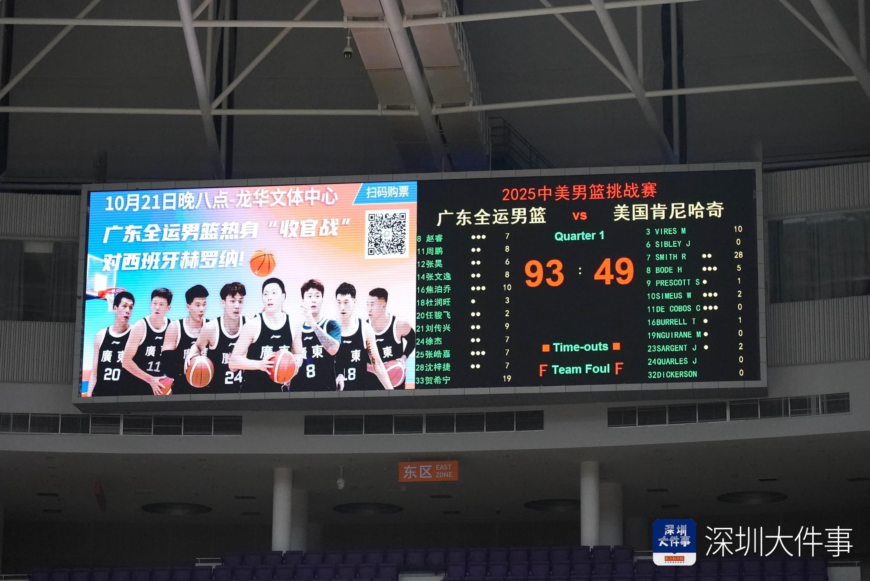 10月17日晚,2025中美男篮挑战赛在深圳宝安体育馆火热开战,广东全运男篮以93比49的压倒性比分战胜美国肯尼哈奇男篮,为现场近5000名球迷奉献了一场酣畅淋漓的篮球盛宴。
