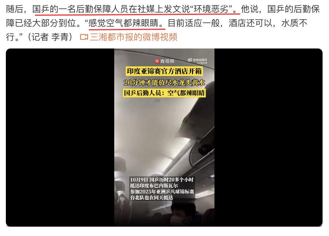 尽管赛前做了充分准备,携带大量食物和药品应对可能状况,但印度现实环境的挑战仍远超预期。后勤人员入住酒店后即发现,打开水龙头流出的竟是黄色浑水,需持续放水20分钟才能见到清水。更令人咋舌的是,双床房内两张床紧挨在一起,与国内酒店标准形成鲜明对比。