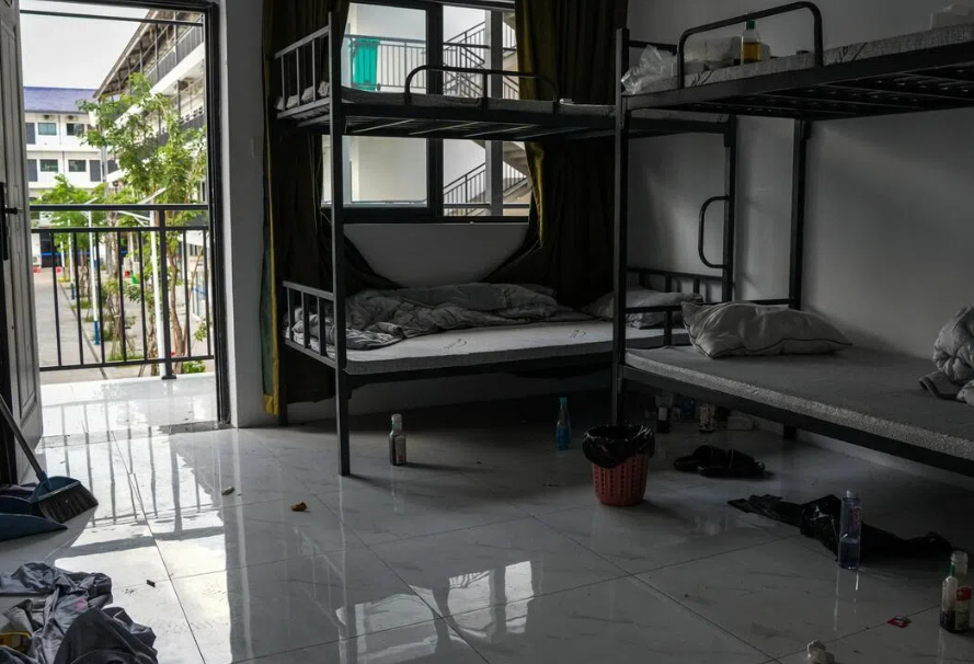 陈志的创新在于规模化。他在柬埔寨全国范围内建造了至少10个“诈骗园区”,这些地方伪装成科技园或度假村,但内部是人间地狱。最大的一个位于波贝市,占地广阔,四周环绕高墙和带刺铁丝网,像一座中世纪堡垒。园区内是成排的宿舍,每间房挤满几十人,空气中弥漫着汗臭和绝望。工人——大多是来自东南亚国家的年轻人——被虚假招聘广告诱骗而来。他们被告知有高薪工作,如客服或翻译,却一落地就被没收护照,关进这些牢笼。
