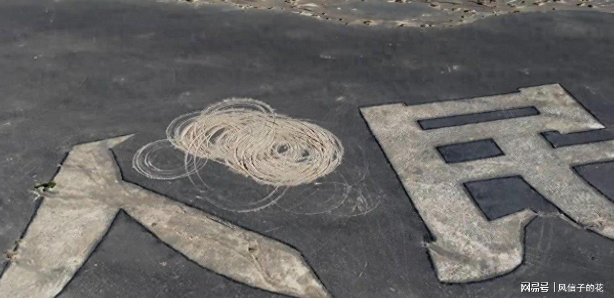 可如今再看,地上满是漂移车辙,车轮反复碾压的痕迹将地面刮得乱七八糟。尤其是‘人’与‘民’两字之间,破坏得最为严重,原本清晰的轮廓已模糊不清。