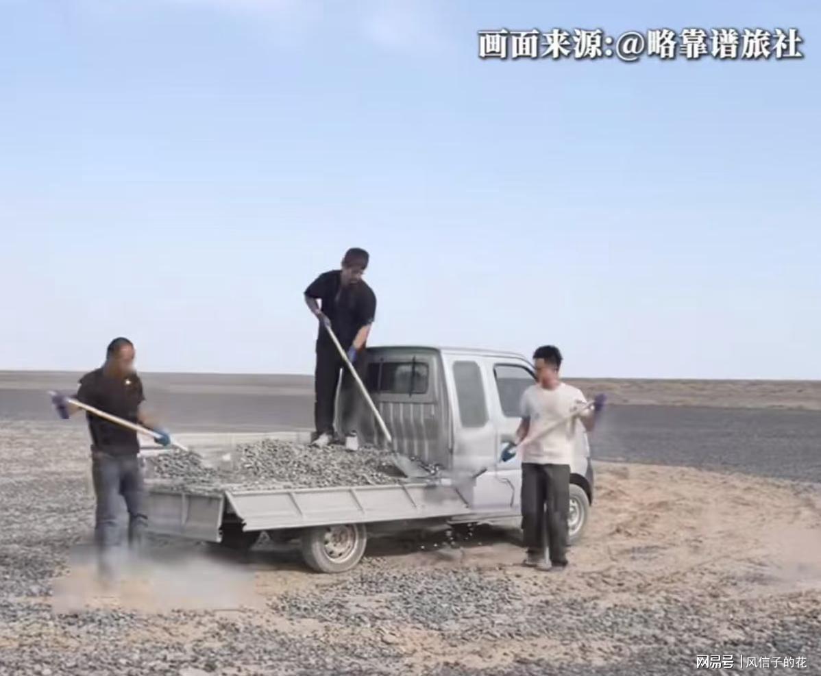 可他到了戈壁滩,连像样的工具都没带,就蹲在地上扒拉了几下石头,拍了段视频就走了,明摆着就是做做样子。