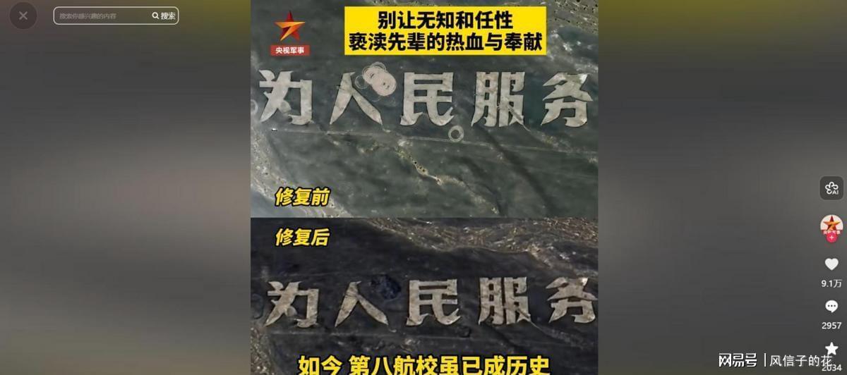 最先发声的是人民空军,他们专门在官方平台上发文,提到这片‘为人民服务’地标是当年空军第八航校官兵们的心血,如今被热心人士守护修复,让人感动。