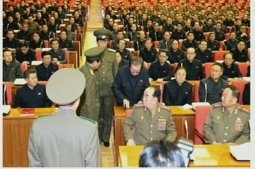 上午10点左右,一辆军用大巴驶来,停在阅兵场主席台旁。中央书记、部门负责人、副部长等高官陆续下车。但令人惊讶的是,一直被视为“二号人物”的张成泽却没有与他们同行,而是从旁边一辆普通公交车上走下来。此时的他脸色蜡黄,不复平常在镜头上的风度翩翩,身边还站了两位挂着国家安全保卫省袖标的宪兵,名为搀扶,实际上看着更像是挟持。
