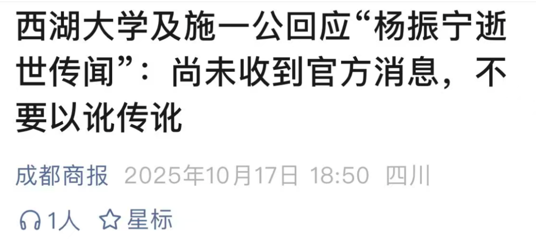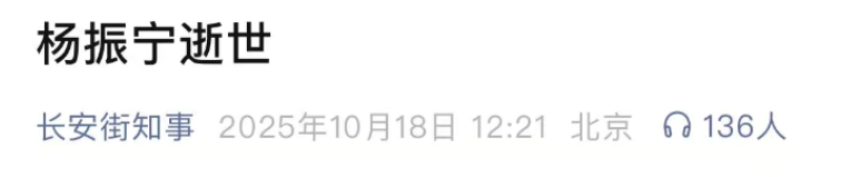 相当于又过了五个小时,杨振宁老先生去世的消息才被允许在媒体上正式公布。