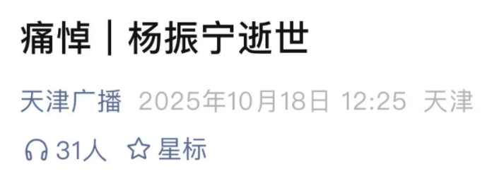 综上所述,天津广播在杨振宁老先生去世消息的播报上,虽然存在失误,但也展现了其新闻播报的敏锐性。对于普通网友而言,他们的行为无疑是有功的,至少让我们以另一种方式提前得知了这一不幸的消息。