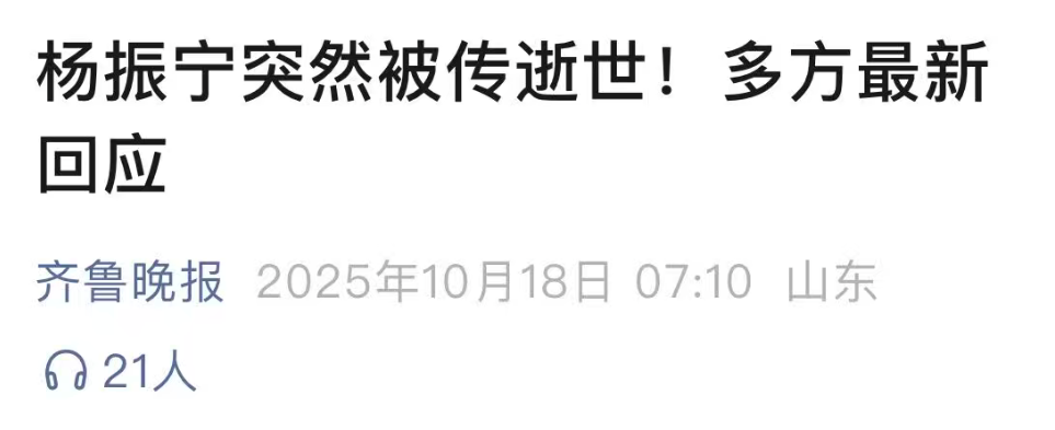 近日,一则关于诺贝尔奖得主杨振宁老先生去世的消息引发了广泛关注。据媒体半小时前发布的消息,这一不幸事件终于得到了确认。