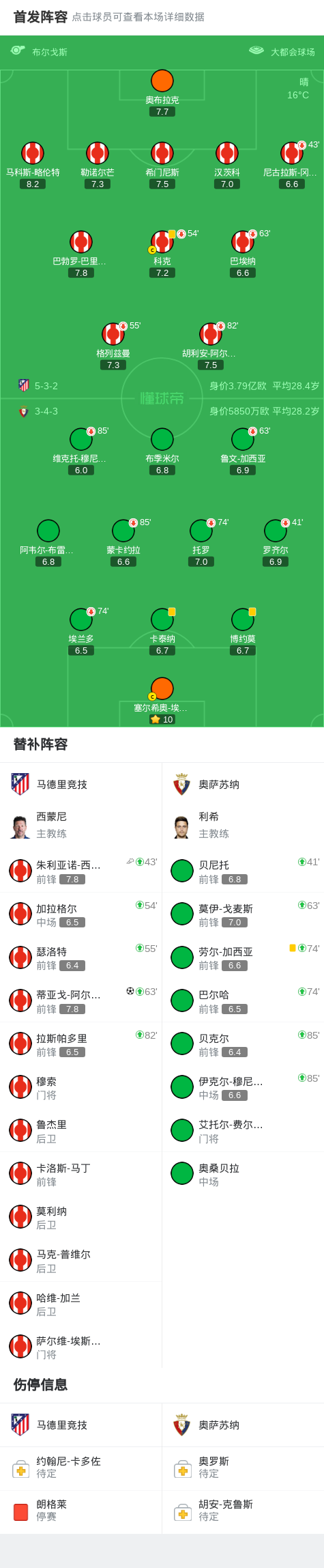 根据赛后数据,马竞全场控球率52%,射门12次中4次射正。防守端完成23次解围和14次抢断,西蒙尼的球队用典型防反战术赢得三分。奥萨苏纳虽14次射门但仅3次射正,效率欠佳。
