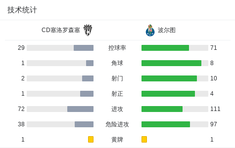 波尔图全场完成12次成功过人,创造7次绝佳得分机会,防守端仅让对手获得1次角球。门将迪奥戈·科斯塔做出3次关键扑救,确保球门不失。CD塞洛罗森塞全场0射正的表现,凸显了两队实力差距。