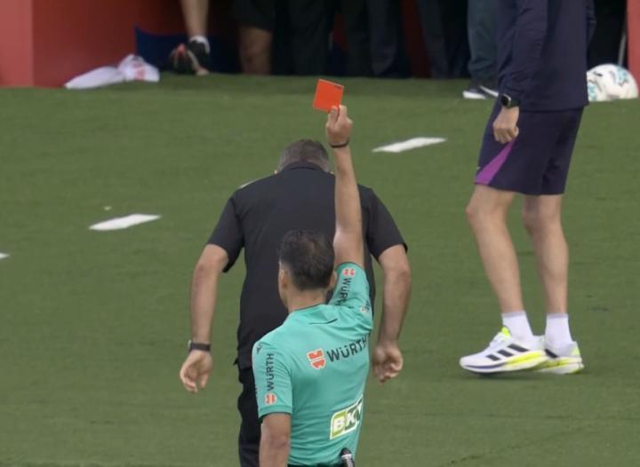 在西甲第9轮焦点战中,巴萨主场2-1险胜赫罗纳。比赛进入伤停补时阶段时出现戏剧性转折:主帅弗里克因连续两次技术区抗议判罚,先被主裁判出示黄牌警告,随后因做出争议手势领到第二张黄牌,两黄变一红被罚上看台。根据赛程安排,这次处罚将导致弗里克无法现场指挥10月26日对阵皇家马德里的国家德比。