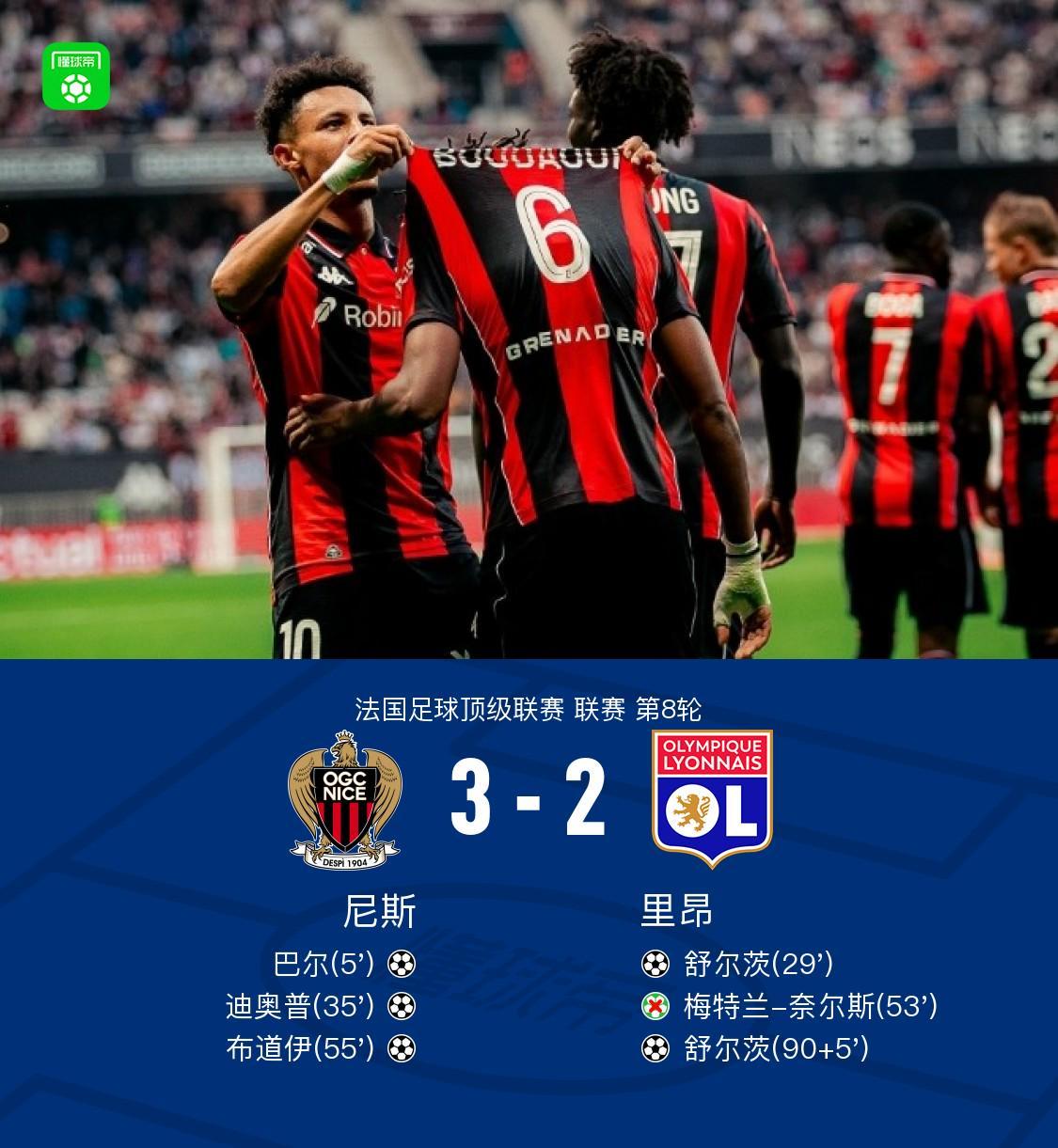北京时间10月18日,法国足球顶级联赛(法甲)第8轮迎来一场焦点对决,尼斯坐镇主场迎战传统劲旅里昂。经过90分钟激战,尼斯凭借迪奥普的传射建功以及巴尔、布道伊的破门,以3-2力克里昂。尽管舒尔茨在下半场补时阶段完成双响,但里昂仍未能逆转比分。