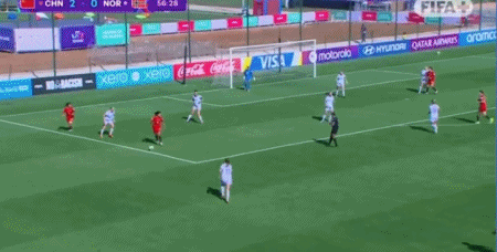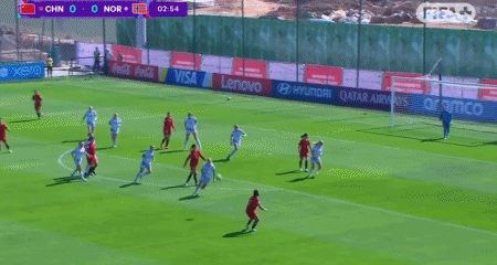比赛伊始,双方就展开了激烈的拼抢。第16分钟,中国女足U17队获得任意球机会,陈睿琳抓住机会,直接起脚攻门,皮球如一道闪电般直挂死角,为中国队率先打破僵局,1-0领先挪威。