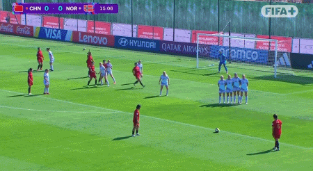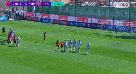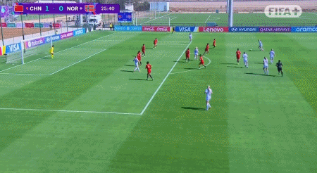 第16分钟:陈睿琳任意球破门,中国1-0领先挪威