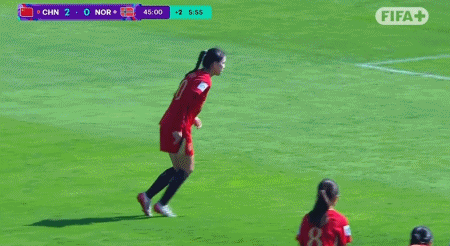 第45+6分钟:周欣怡点射命中,中国2-0扩大领先