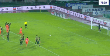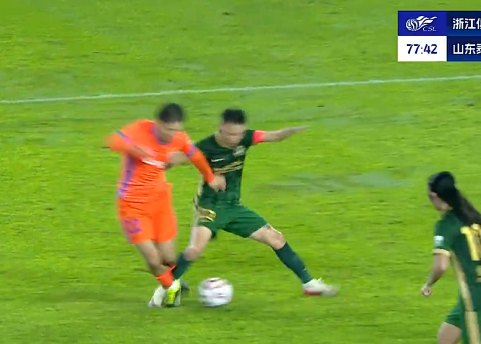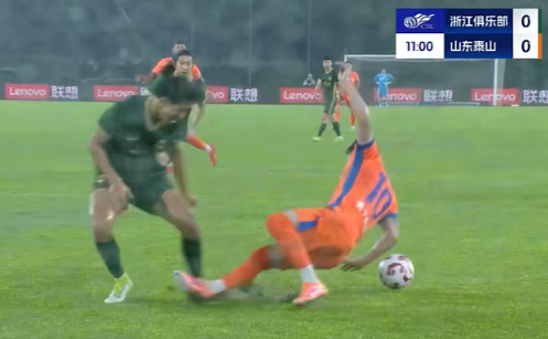 比赛第11分钟,场上出现争议一幕。山东泰山外援卡扎伊什维利突入禁区,被浙江队后卫张瑷晖踢倒。主裁判果断判罚点球,但卡扎伊什维利主罚的点球被浙江队门将赵博神勇封出,泰山队错失领先机会。