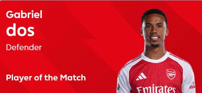 在周日凌晨进行的英超第8轮焦点战中,阿森纳客场1-0力克富勒姆,延续了球队的连胜势头。本场比赛,巴西中卫加布里埃尔凭借一记关键助攻及出色的防守表现,以41%的得票率当选英超官方球迷票选最佳球员,力压得票率31%的队友萨卡。