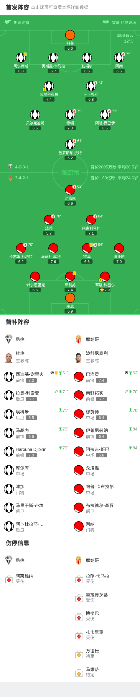 第72分钟:巴洛贡抽射破门,摩纳哥1-0领先