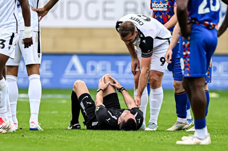第一次:布罗姆利客场对阵什鲁斯伯里时边裁受伤