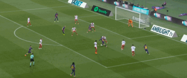 上半场两队1-1战平。下半场,巴萨虽占据主动,但迟迟无法打入制胜球。直到补时第3分钟,德容突入禁区右肋后横传,阿劳霍门前铲射破门,完成绝杀!