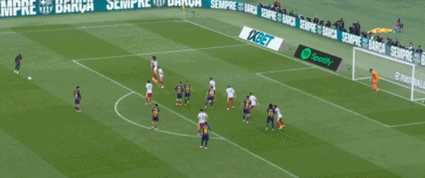 第20分钟,赫罗纳展开反击,阿尔瑙头球摆渡,马丁内斯做球,背对球门的维特塞尔倒钩破门,将比分扳平为1-1。