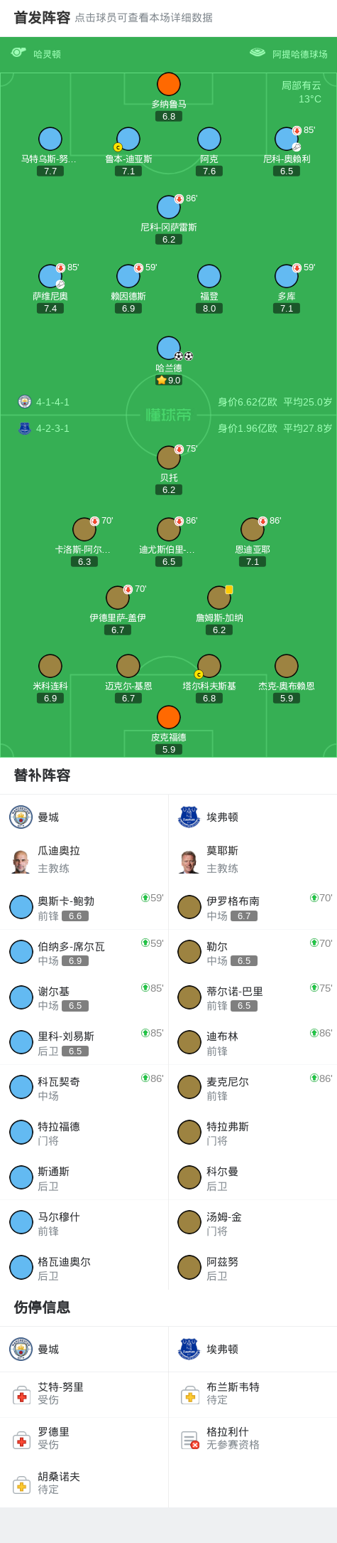 下半场,曼城继续加强攻势。第52分钟,霍尔主罚任意球传到门前,多纳鲁马稳稳将球拿下;第59分钟,曼城连换两人,鲍勃和B席替补登场,为球队注入了新的活力。