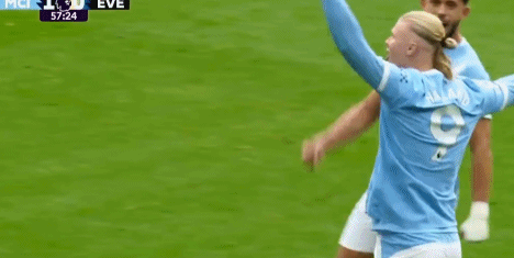 面对埃弗顿的密集防守,曼城整体进攻受阻,但哈兰德仍凭借个人能力改写比分。第57分钟,奥莱利左路精准传中,哈兰德力压防守球员头槌破门,为球队打破僵局;仅5分钟后,萨维尼奥再度送出横传,哈兰德抢点扫射得手,完成双响炮。