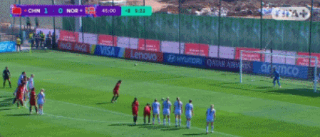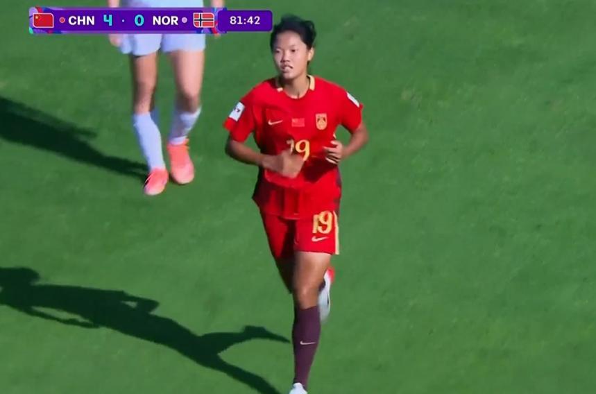 下半场挪威队加强边路进攻,但收效甚微。中国女足抓住机会扩大比分:第57分钟,陈睿琳挑传助攻,周欣怡禁区内凌空包抄得手,3-0!