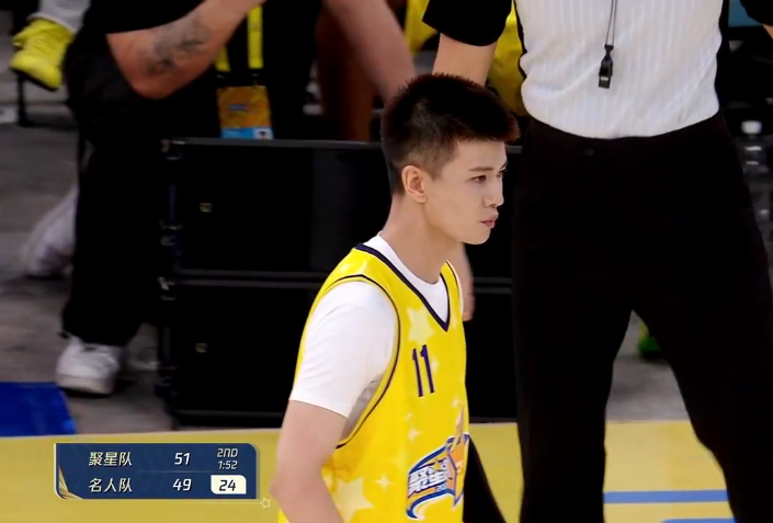 次节比赛,聚星队接连追分,吴勇豪贡献个人第4记暴扣,名人队内外开花再度拉开44-34领先优势。马布里抢断反击上篮,双方加强进攻连续冲击内线得分,曹芳大空位三分命中。郭艾伦与吴勇豪下场后,聚星队连续反击得分,赵爽与马布里等连续上篮得分反超8分。贾森-威廉姆斯反篮不中,名人队追回2分,上半场结束名人队51-57被聚星队反超。