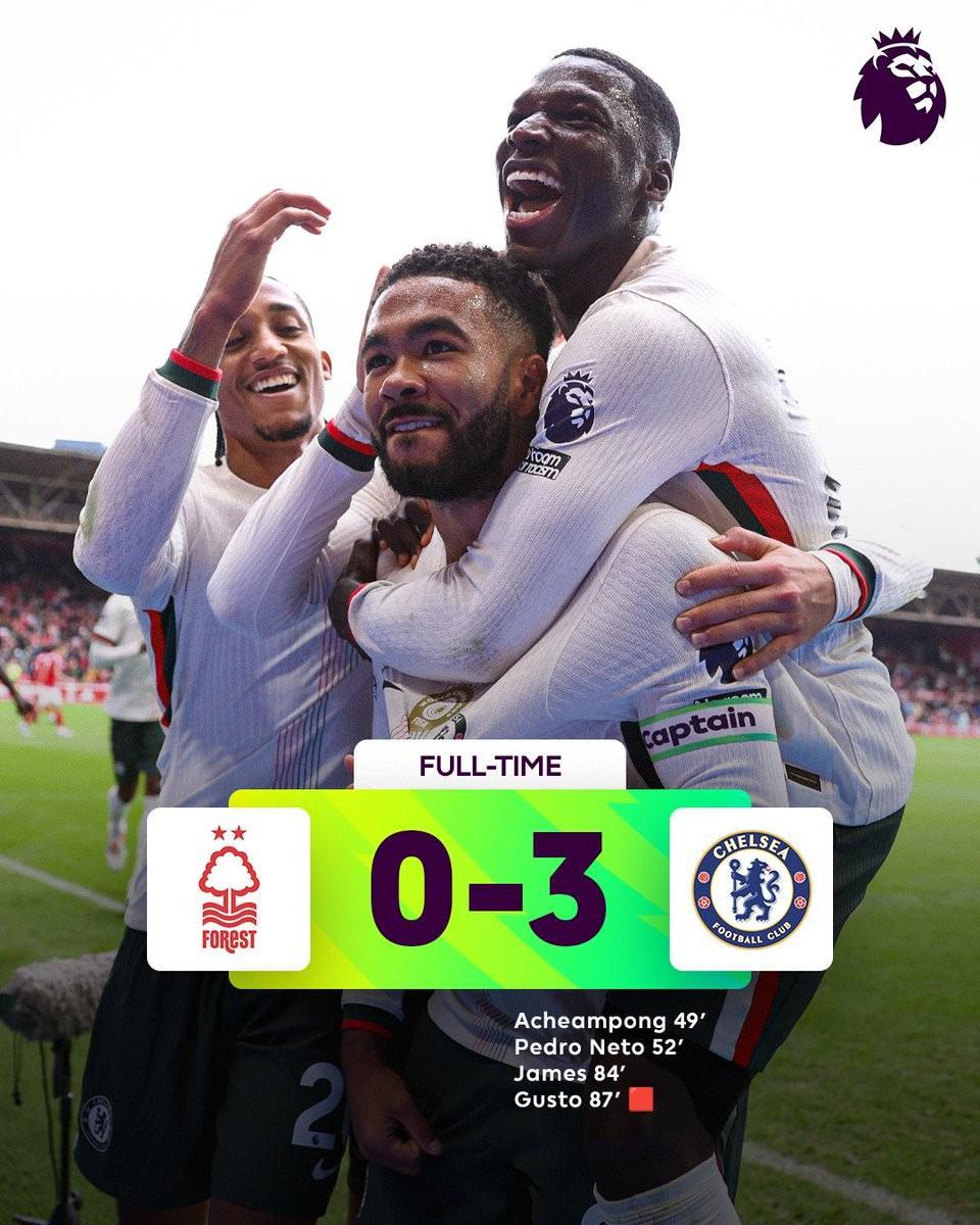 本场比赛,切尔西展现出了强大的攻势足球。乔希-阿昌庞、佩德罗-内托和里斯-詹姆斯三位球员各显神通,分别攻入一球,为球队的胜利立下了汗马功劳。他们的精彩表现,不仅让球迷们欢呼雀跃,更让对手诺丁汉森林感受到了切尔西的强大实力。