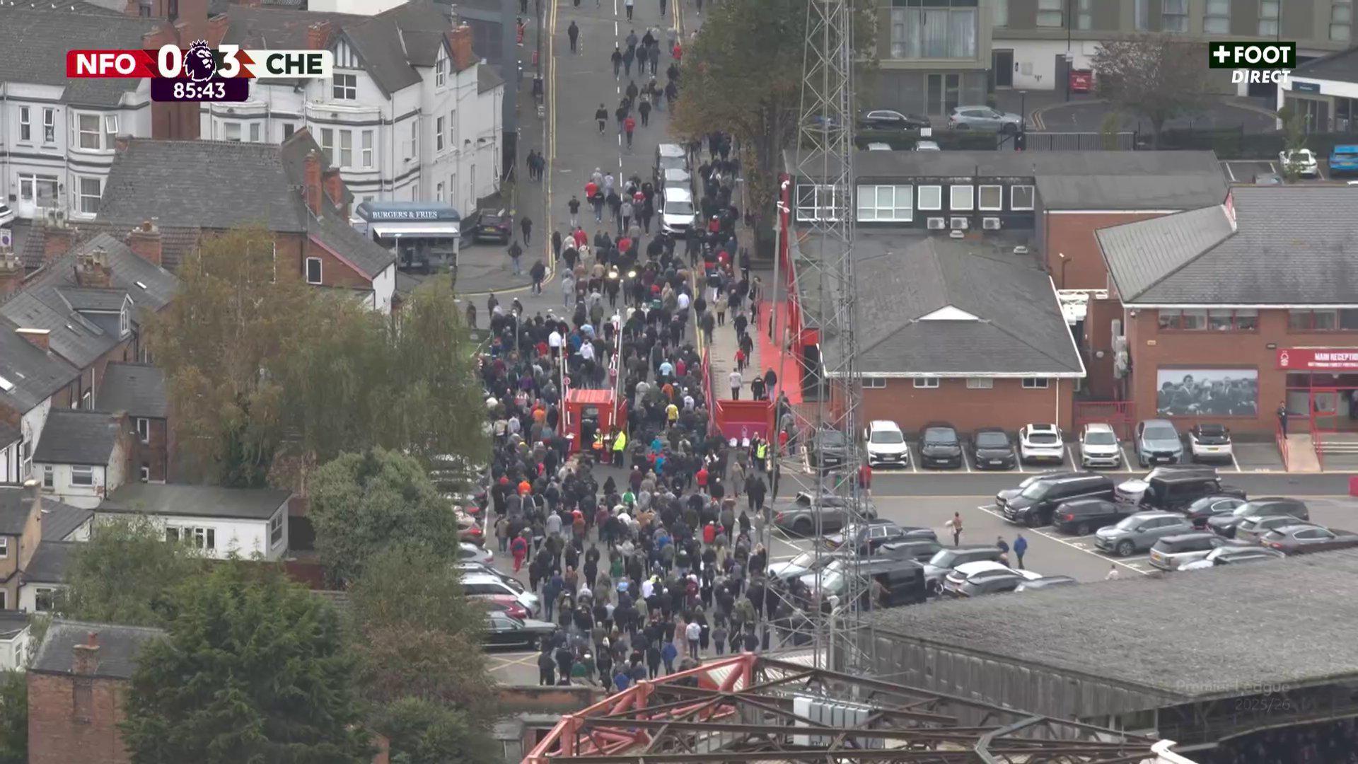 第84分钟,切尔西通过角球战术锁定胜局:埃斯特旺开出角球,诺丁汉森林门将塞尔斯扑救脱手,里斯-詹姆斯跟进补射得手,将比分定格在3-0。此时看台上已出现大量空座,大批失望的诺丁汉森林球迷选择提前退场表达抗议。