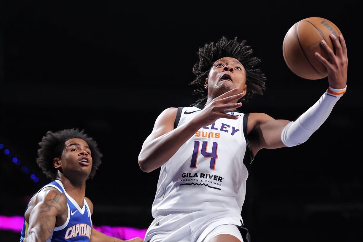 作为2022年NBA选秀大会首轮第29顺位的新秀,华盛顿的职业生涯充满波折。这位身高191cm、体重88kg的后卫,上赛季以双向合同加盟太阳后,常规赛仅获得16次出场机会,场均7.4分钟贡献2.2分1助攻。但在发展联盟赛场,他展现出全明星水准:代表山谷太阳出战32场,场均轰下21.7分7助攻,三分命中率高达41.4%,成为球队进攻核心。