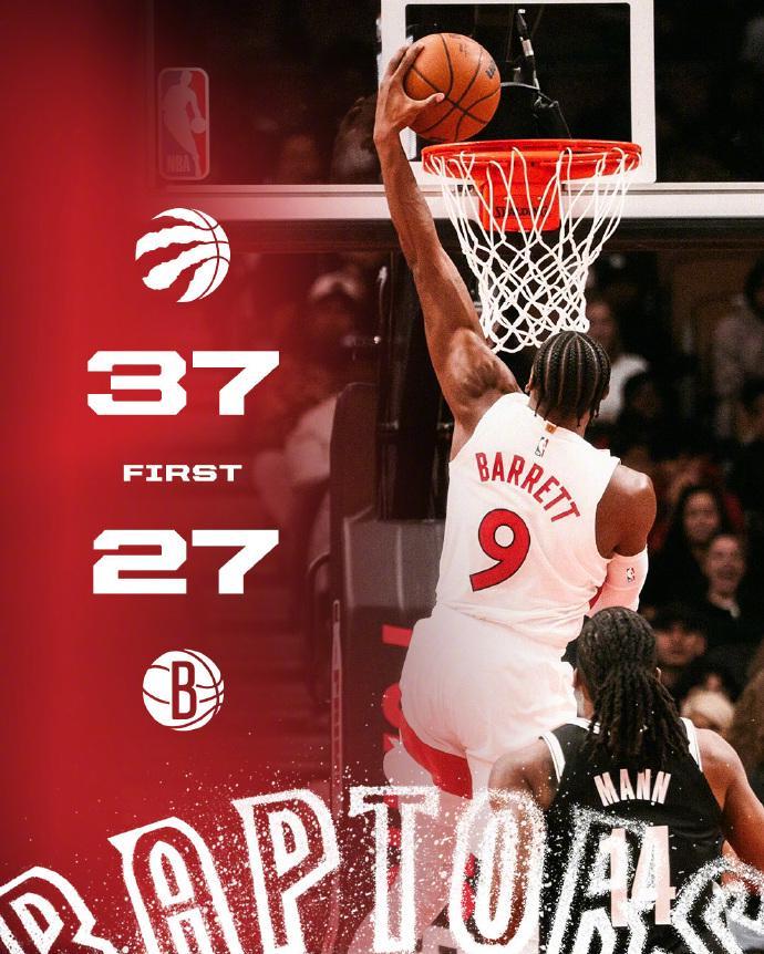 猛龙首发五人全部得分上双,其中斯科蒂-巴恩斯表现最为抢眼。他全场出战35分钟,15投10中,罚球12罚11中,砍下全队最高的31分,同时贡献6篮板4助攻3抢断,尽管出现3次失误和3次犯规,但正负值仍达+9。上半场,巴恩斯便火力全开,9投7中,三分1中0,罚球4中3,高效拿下17分2篮板1助攻3抢断1盖帽,首节独得13分,为球队奠定优势。