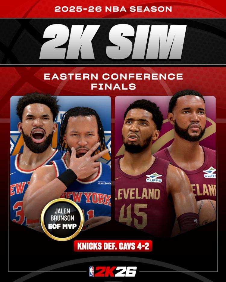 北京时间10月18日,雷速体育消息,NBA 2K26官方社媒近日更新动态,公布了他们基于游戏数据模拟预测的新赛季东西部决赛对阵情况,引发了球迷们的广泛关注。