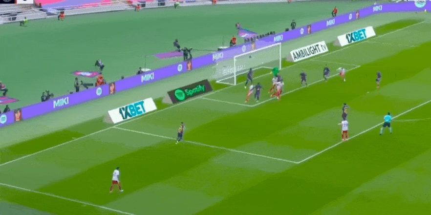 比赛伊始,巴塞罗那就对赫罗纳展开了压迫式攻势,长时间形成半场攻防。亚马尔和孔德的右边路成为进攻重点。第13分钟,佩德里禁区拿球横切,一脚反向冷射击中立柱弹进球门,1:0!巴萨取得领先。
