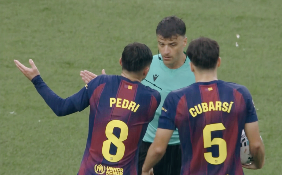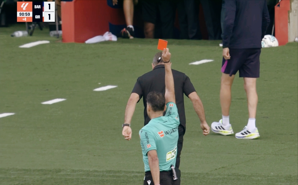 下半场回来,费尔明换下托尼费尔南德斯,拉什福德被推到锋线上。与上半场开局类似,巴塞罗那依旧压制着赫罗纳。费尔明和亚马尔的射门均被门将拒之门外。库巴西禁区劲射破门,但裁判认为埃里克加西亚犯规在先,进球无效,引发了巴萨球员的强烈不满。