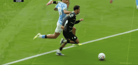上半场的尾声阶段,两队都相继获得了绝佳的机会。先是恩迪亚耶一系列精彩的过人后起脚怒射,多纳鲁马做出关键扑救,力保球门不失。1分钟后,哈兰德完成抢断,多库却选择了保守的推射,皮克福德奋力将球扑出,半场结束,两队互交白卷。