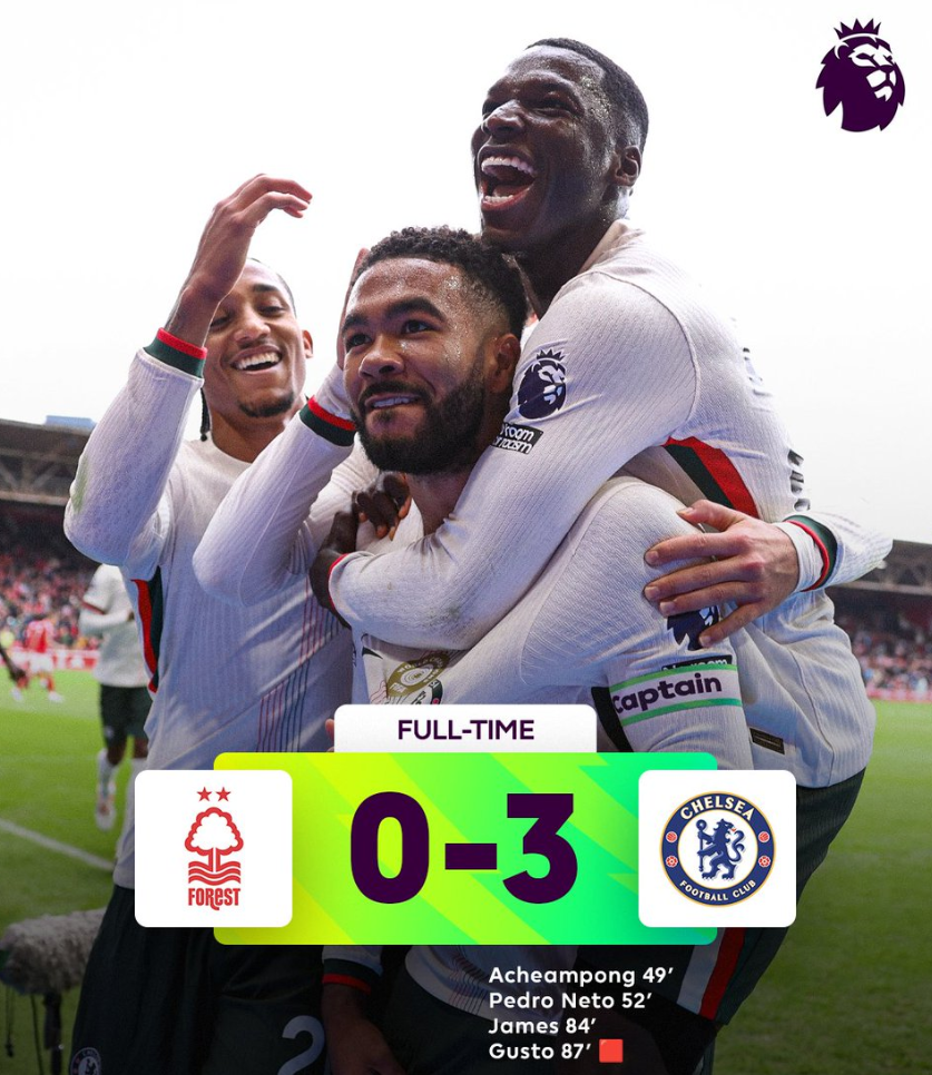 雷速体育10月18日讯,在今晚刚刚结束的英超联赛第八轮的一场焦点对决中,诺丁汉森林坐镇主场,却以0-3的比分不敌来访的切尔西。值得一提的是,波斯特科格鲁依旧未能在这场比赛中迎来他执教诺丁汉森林的首场胜利。本场比赛,切尔西的进球功臣分别是内托、年轻小将阿昌庞以及队长里斯·詹姆斯。