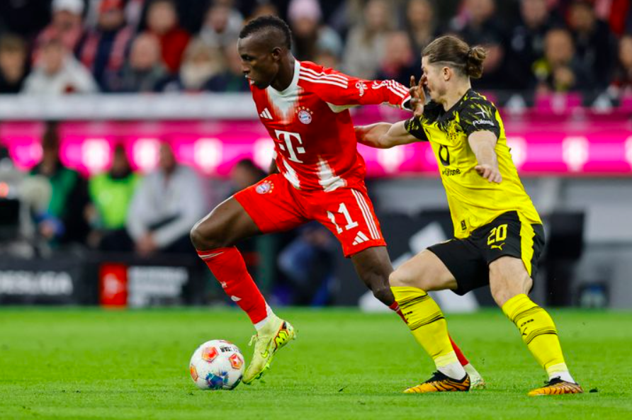 领先后的拜仁继续发动猛烈进攻。迪亚斯的射门考验了多特蒙德门将科贝尔,而多特蒙德则始终难以完成第一次射门。