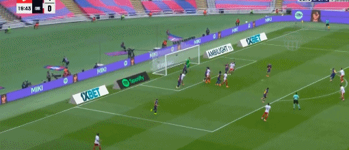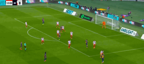 亚马尔右路精准横传,佩德里领球后转身内切,突然起脚低射远角,皮球击中立柱后弹入网窝,加萨尼加毫无反应,1-0!