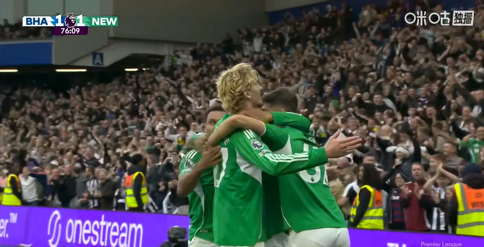 半场战罢,布莱顿1-0领先纽卡斯尔联。