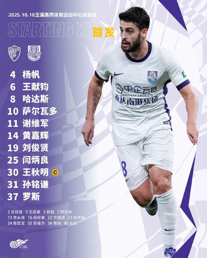 本场比赛,津门虎面临阵容不整的困境。主力中锋基莱斯因累积4黄停赛,巴顿也因伤缺席,迫使球队在首发阵容上做出调整。前锋线上,刘俊贤单箭头顶在最前面,巴顿的位置由杨帆替代,阿代米则作为后手坐在替补席上。