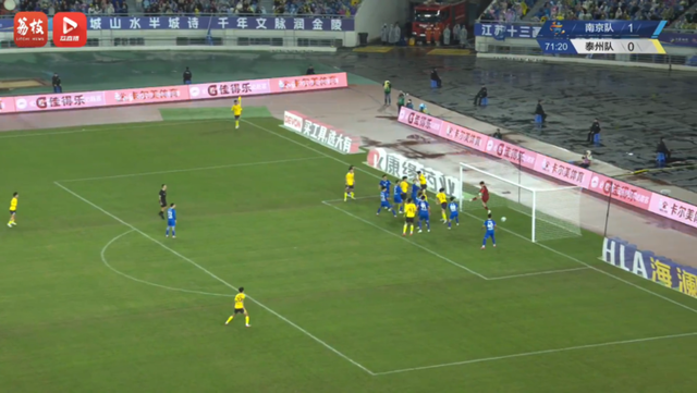 比赛进行到第71分钟时,场上形势发生了戏剧性的变化。泰州队的14号球员王振宇抓住角球机会,以一记精准的射门成功破门,将比分顽强扳平。这一进球瞬间点燃了现场球迷的热情,欢呼声此起彼伏。