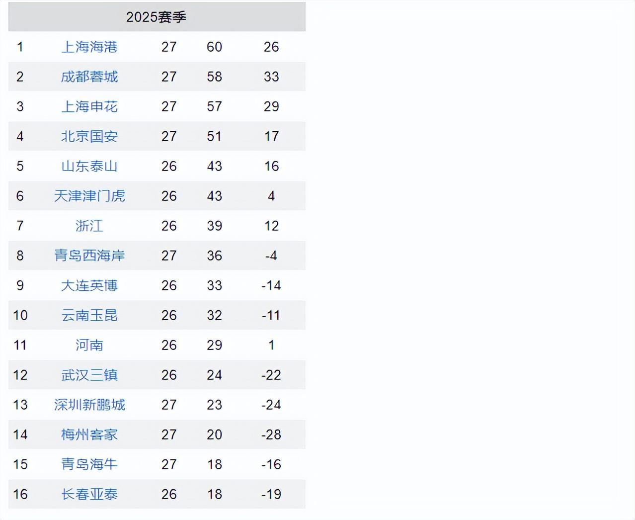 本场比赛过后,北京国安积51分仍然排名第4,但距离榜首的上海海港已有9分之差,在联赛仅剩三轮的情况下,北京国安夺冠仅剩理论可能。而深圳新鹏城则以23分升至积分榜第13名,高出降级区5分,保级形势一片明朗。这样一来,保级球队大概率将在梅州客家、青岛海牛和长春亚泰之间产生。