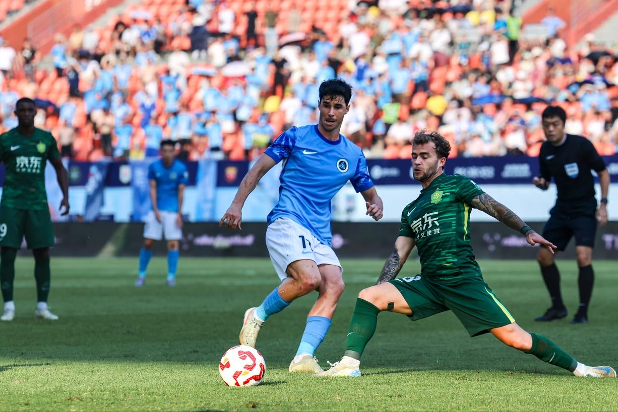 比赛开始后,国安在进攻上显得更为主动,控球率一度达到65%左右,掌控着比赛的节奏。然而,这也在深圳队的意料之中,作为弱势一方,深圳队更擅长利用防守反击来寻找机会。经过10分钟的试探后,深圳队在第13分钟发力,埃度接队友的头球摆渡后,依靠速度突入禁区,创造了单刀机会。侯森出击被过掉后,埃度轻松推射得分,帮助深圳队1球领先。
