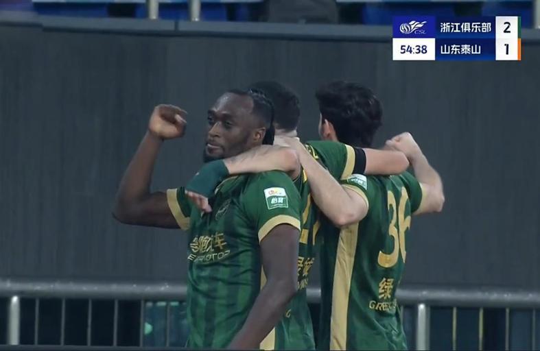 第54分钟,李提香精准直塞,奥乌苏果断打门得手,浙江2-1反超比分!
