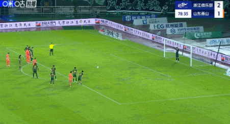 第45分钟,黄政宇禁区外轰出一记世界波,打在程进身上折射入网,泰山客场1-0领先!