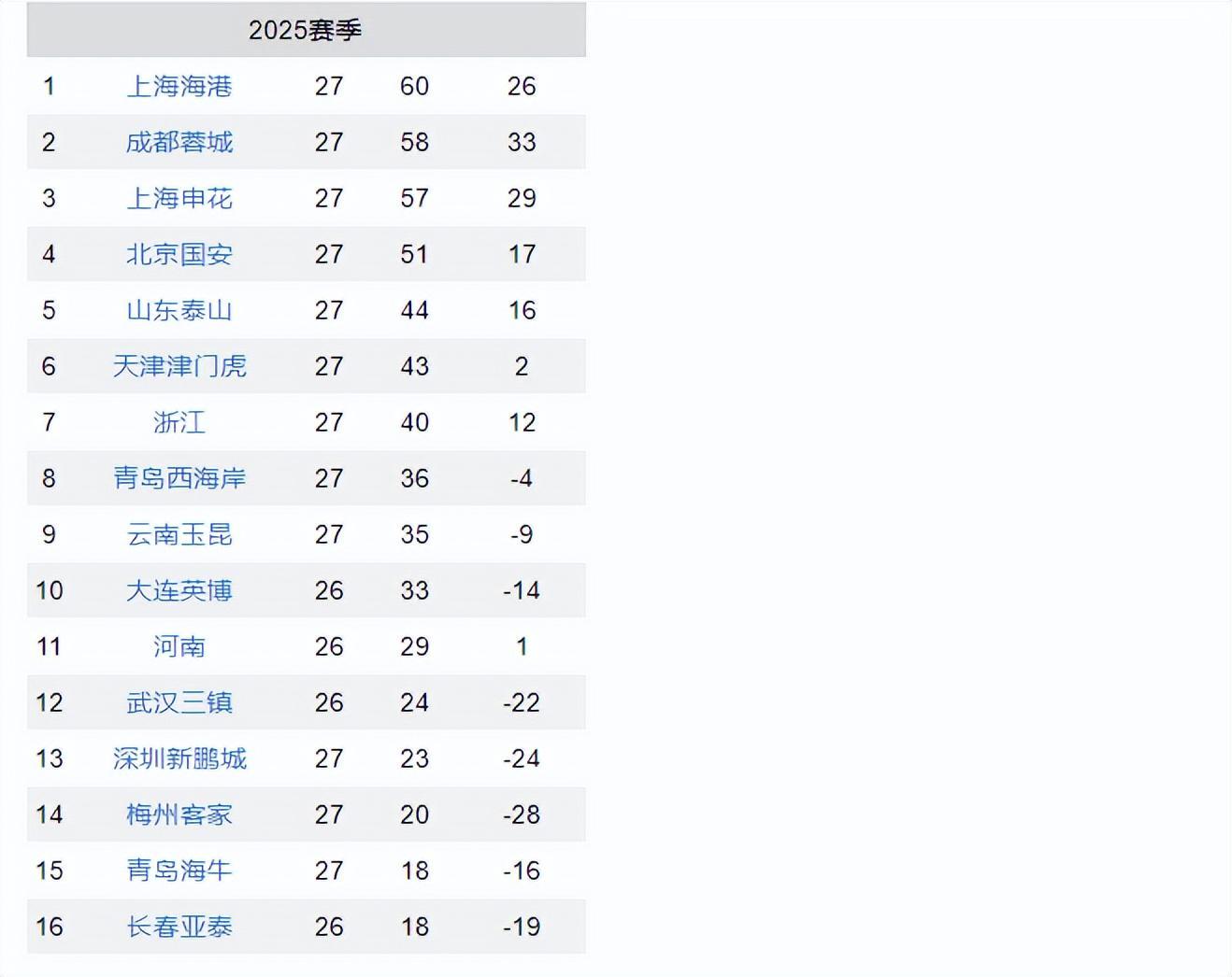本轮中超前四球队中仅北京国安输球,上海海港以2分优势领跑积分榜,成为夺冠最大热门。成都蓉城和上海申花仍保留争冠希望。明日还有两场关键战:大连英博对阵武汉三镇,河南队主场迎战长春亚泰。若长春亚泰无法全取三分,将基本锁定一个降级名额。