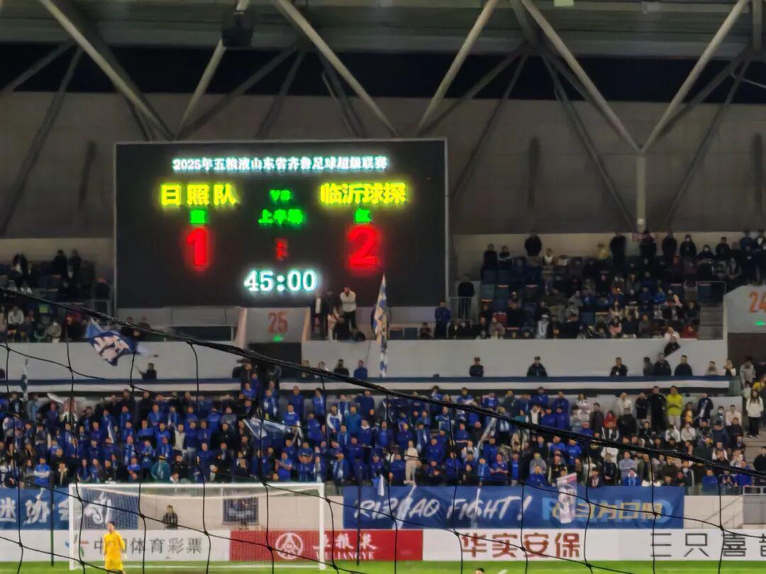 但好景不长,第35分钟,临沂球探队再次抓住机会破门,将比分改写为2:1,重新取得领先。日照队并未放弃,第37分钟获得任意球机会,但未能转化为进球。此后,日照队继续不断突破,但始终未能改写比分,半场比赛以1:2结束。