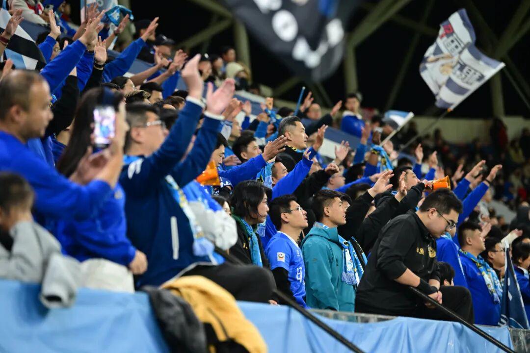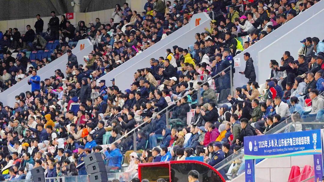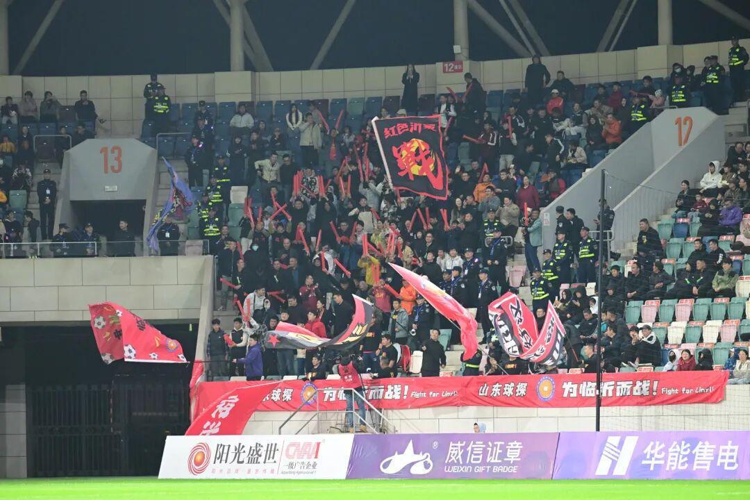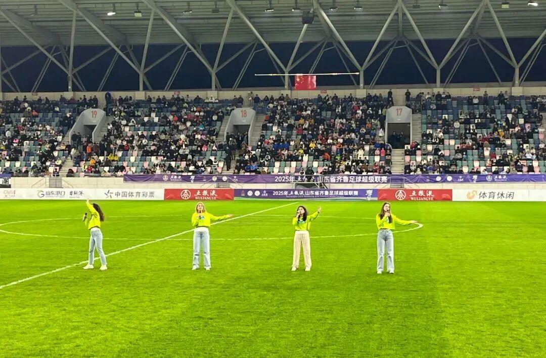 中场休息时,日照文旅轻骑兵·拾光众唱团登场为现场球迷带来歌曲串烧《真心英雄》《壮志在我胸》,为深秋时节增添了满满的热情。球员热身时,他们带来的《最炫民族风》《潇洒走一回》更是将现场氛围不断炒热。