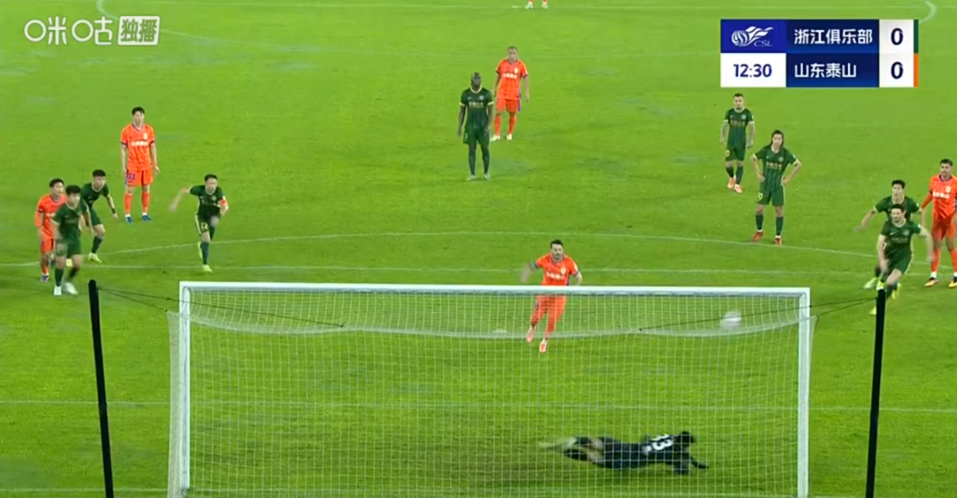 泰山队则伺机发动反击。第11分钟,瓦科带球突入禁区后被对方后卫绊倒,裁判在观看VAR后判罚点球。本来克雷桑是队内第一点球手,但为了帮助瓦科冲击“金靴”,他主动将点球机会让给了队友。然而,瓦科的射门被浙江队门将赵博神勇扑出,泰山队错失领先良机。